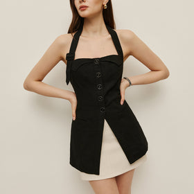 Fudus Halter Neck Button Top
