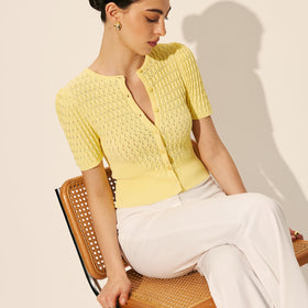 Fudus Hollow Knit Button Top