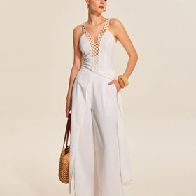 Fudus Hollow-Out Lace-Up V-Neck...