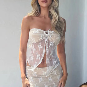 Fudus Hollow-Out Strapless Top and Midi Skirt Set