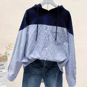 Ergänze dein modisches Outfit mit unserem Fudus Kapuzen-Hemd mit gestreiften Nähten und Kordelzug! Cleveres Lagen-Hoodie-Design mit kombinierten Shirts. Lässiger Style, angenehm zu tragen (Frühling bis Herbst). Perfekt für den Alltag!