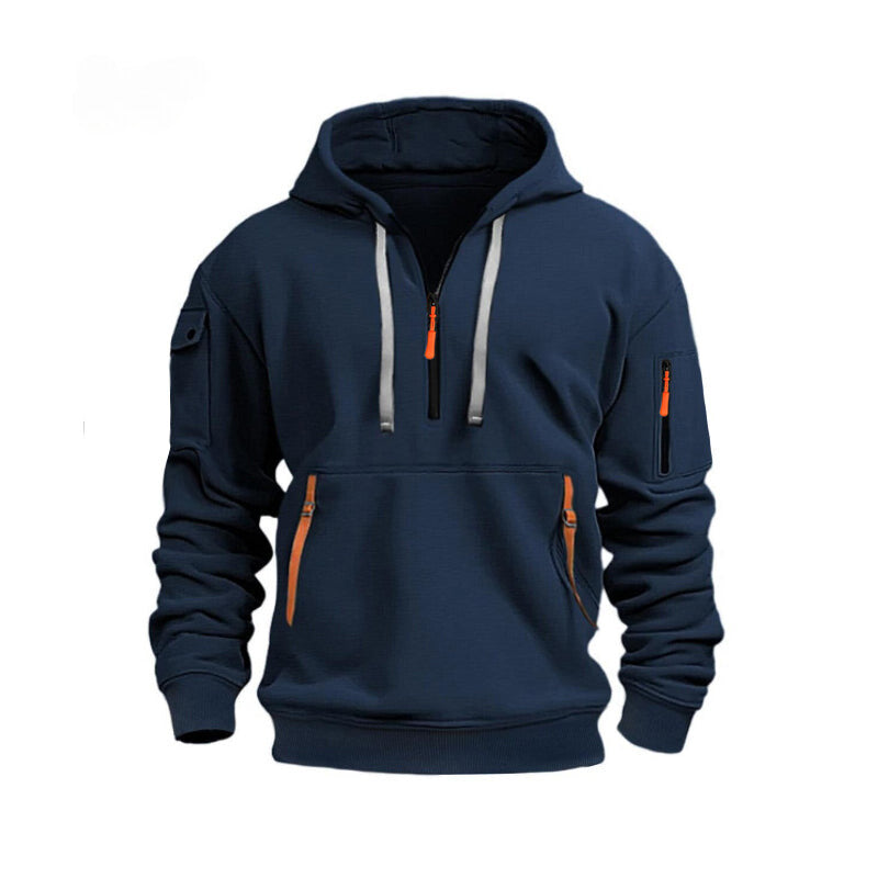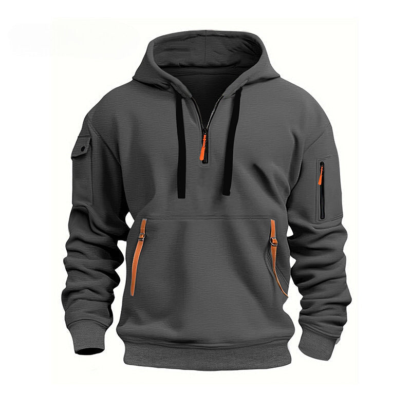 Kapuzenpullover mit langem Arm, Halb-Reißverschluss und Taschen
