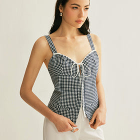 Fudus Kariertes ärmelloses Oberteil mit Krawattenfront
