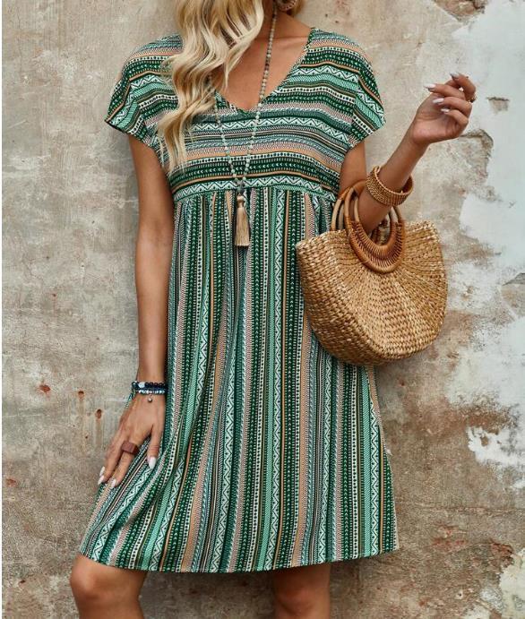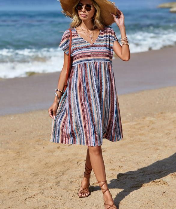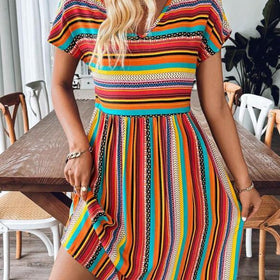 Fudus Kleid mit farbigem, gestreiften Fledermausärmel