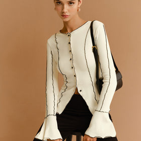 Fudus Kontrast-Lattichbesatz-Knopf-Schlitz-Oberteil
