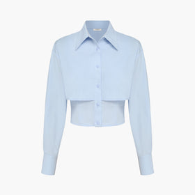 Fudus Kurzarmhemd, Babyblau, Doppellagig, Offener Kragen, Cropped
