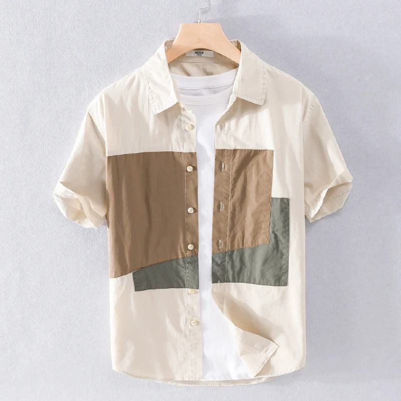 Fudus Kurzarmhemd mit farbigen Blöcken und Knöpfen