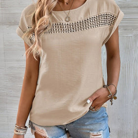 Fudus Kurzarmtop mit unifarbenem Spitzenbesatz