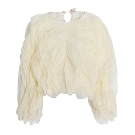 Fudus Langarm Cropped Top mit Rundhalsausschnitt, Stufenrüsche, Netz-Einsatz und Krawattenrücken