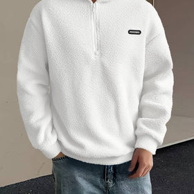 Fudus Langarm-Fleece-Pullover mit Halb-Reißverschluss und Kapuze