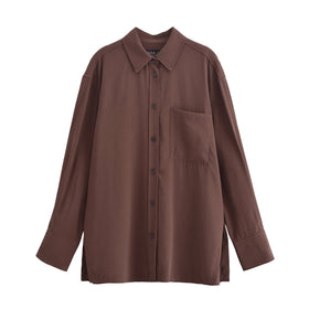 Fudus Langarm-Oberteil mit asymmetrischem Saum und drapiertem Kragen