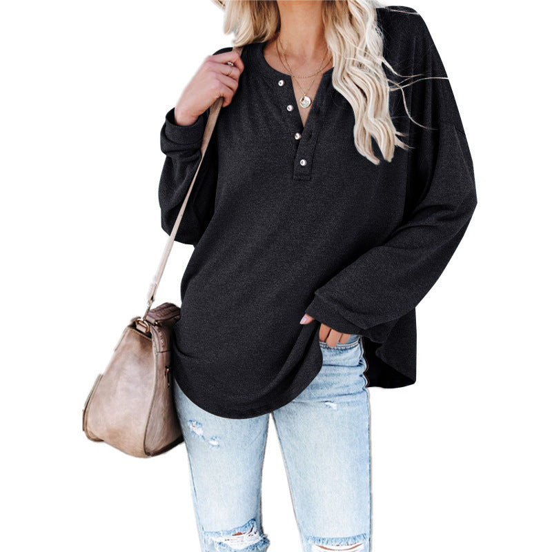 Fudus Langarm-Oberteil mit V-Ausschnitt und Knöpfen