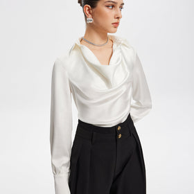 Fudus Langarmbluse mit V-Ausschnitt und Plissee
