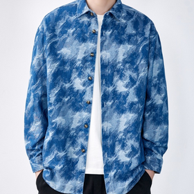 Fudus Langarmhemd mit Batikmuster und zwei Taschen