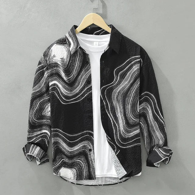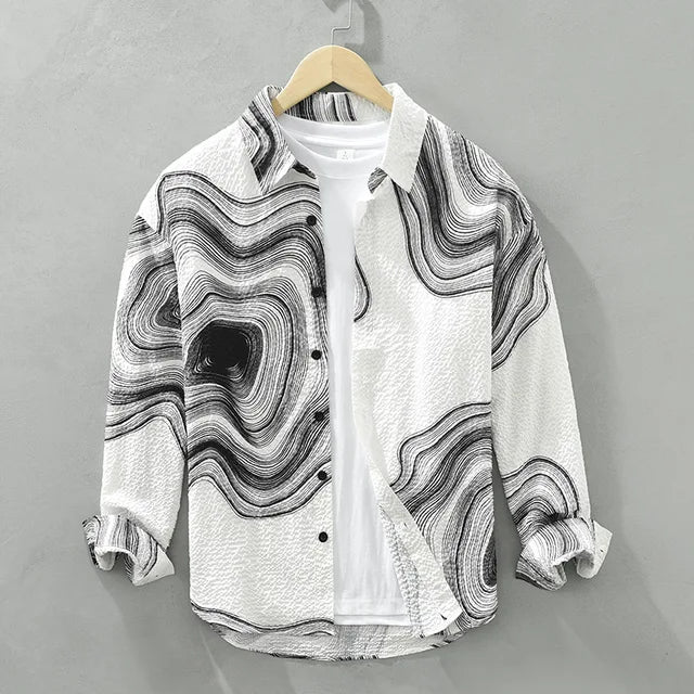 Fudus Langarmhemd mit Knöpfen und abstraktem Wellenmuster