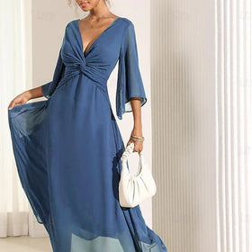 Fudus Langarmshirt, einfarbiges V-Ausschnitt-Maxikleid