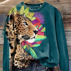 Fudus Langarmsweatshirt mit Rundhalsausschnitt und Leopardenblumen-Print