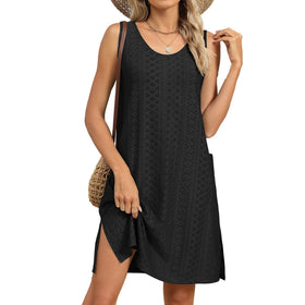 Fudus lässiges ärmelloses Rundhals-Pocketkleid
