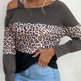 Fudus Leopardenmuster Farbblockträgertop mit kalter Schulter