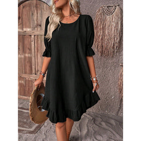 Fudus lockeres Kleid mit Swing-Ärmeln und Rundhalsausschnitt