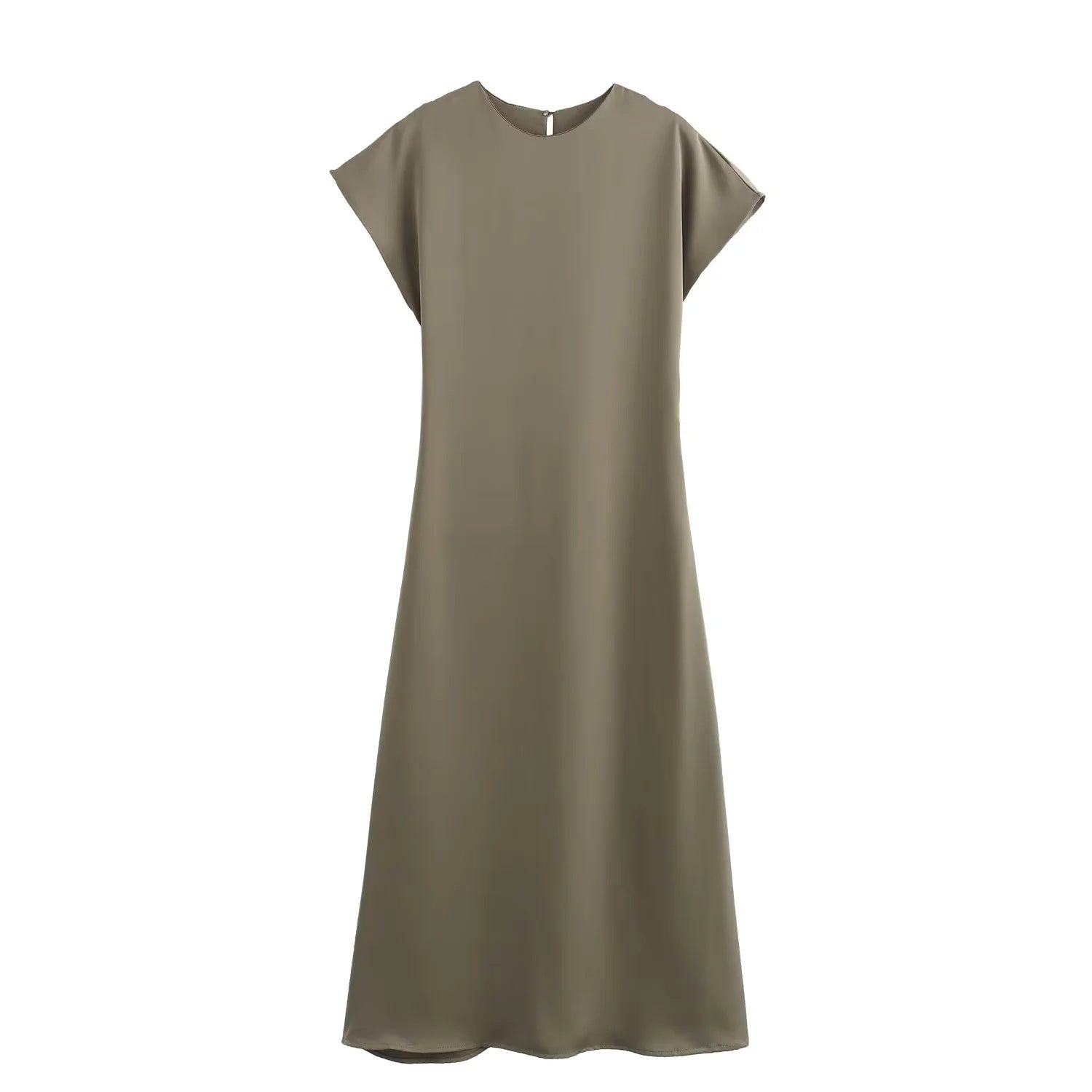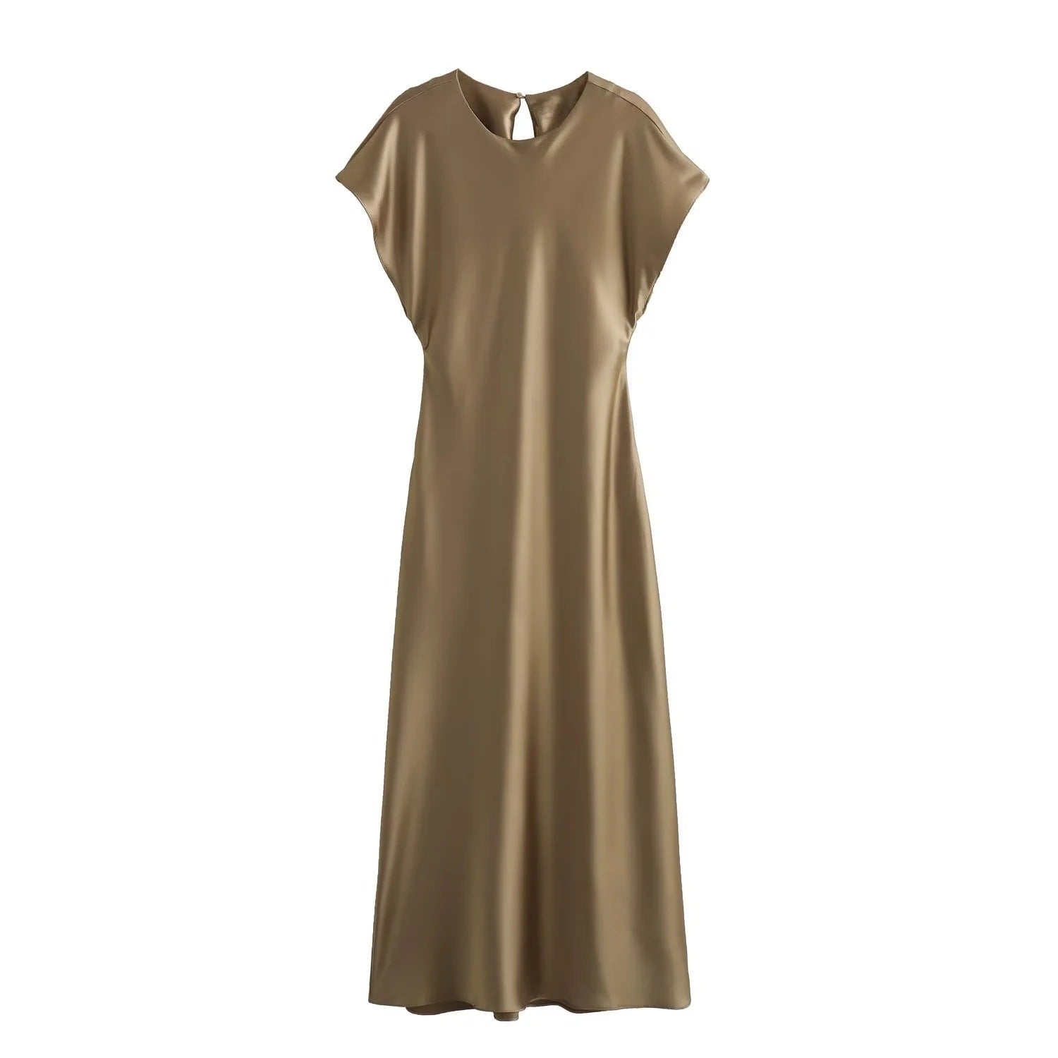 Fudus Midikleid aus satiniertem Stoff, ärmellos und leuchtend