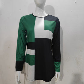 Entspanntes Fit, trendige Bürobekleidung. Rundhalsausschnitt, volle Ärmel. Pullover-Stil, ideal für die Arbeit. Druck und Färbung.