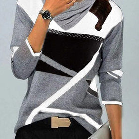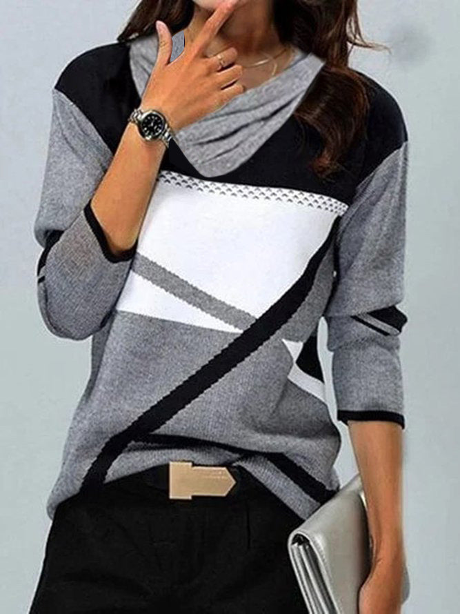 Lässige Passform, schicke Arbeitskleidung. V-Ausschnitt, lange Ärmel. Pullover, ideal für den Arbeitsweg. Druck/Färbung.