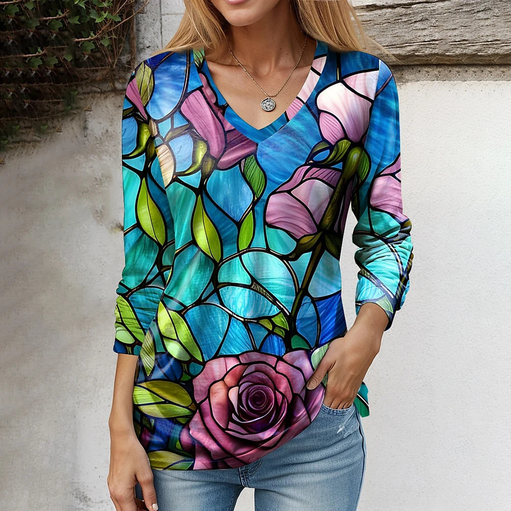 Fudus Modisches V-Ausschnitt T-Shirt im lockeren Schnitt
