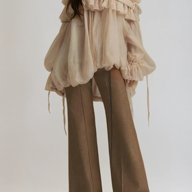Fudus Off-the-Shoulder Mesh Ruffled Shirt