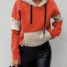 Fudus: Oversized Kapuzenpullover mit Farbblock-Design und off-shoulder Schnitt