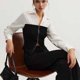 Fudus Poloshirt mit zweifarbigem Design und Zweiwege-Reißverschluss