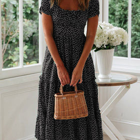 Fudus Quadratischer Ausschnitt Puffärmel Blumenkleid