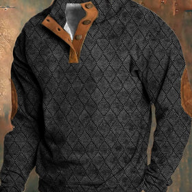 Fudus Retro Fleece Pullover: strukturiert, bedruckt, lässiger Schnitt