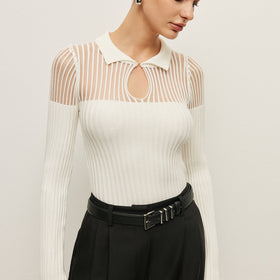 Fudus Rippstrick-Pullover mit Schlüsselloch-Ausschnitt