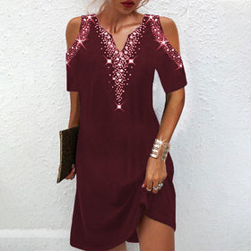 Fudus schickes, kurzärmeliges Minikleid mit V-Ausschnitt und Off-Shoulder-Design