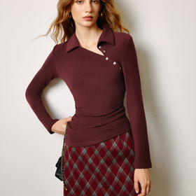 Fudus Schmales Poloshirt mit asymmetrischem Knopf