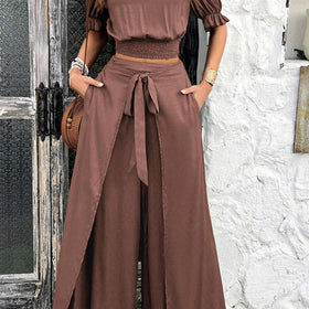 Fudus Schulter-Cropped-Top und Hose Anzug