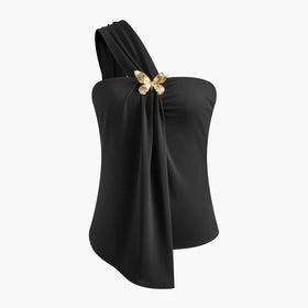 Fudus | Schulterfreies Oberteil mit asymmetrischem Metallschmetterlings-Design