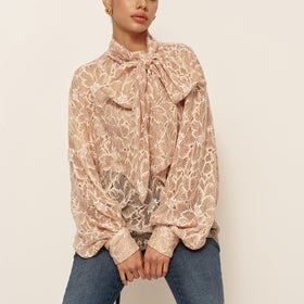 Fudus Semi-Sheer Bow-Front Lace Blouse