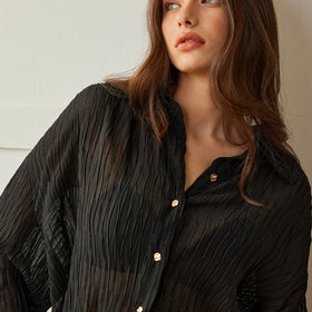 Fudus Semi-Sheer Button-Down Polo Shirt