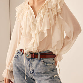 Fudus Semi-Sheer Ruffled Chiffon Blouse
