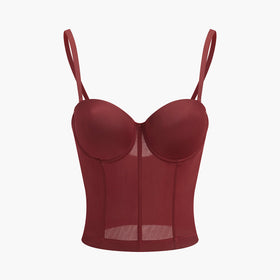 Fudus Semi-Sheer Spaghetti Strap Piped Crop Top