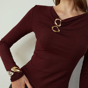 Fudus Slim Fit T-Shirt mit Rundhalsausschnitt und Metall-Dekor