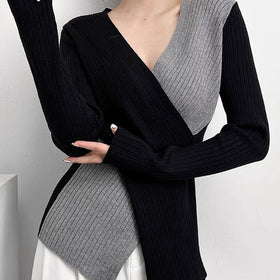 Fudus Slim-fit zweifarbiges Stricktop...
