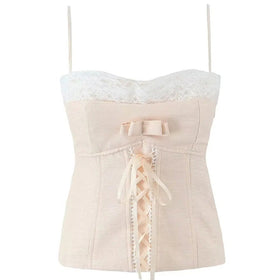 Fudus Spitzen-Tanktop mit Herz-Ausschnitt, Spaghettiträgern und Schleifenknoten-Detail