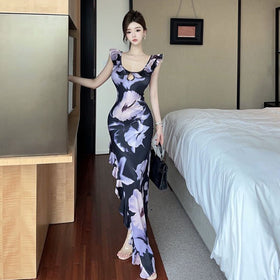 Fudus Spitzenkleid mit Schlitz und Trägern