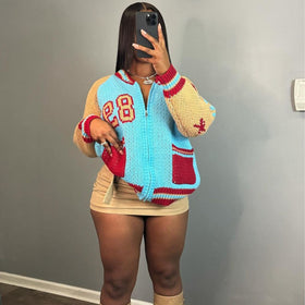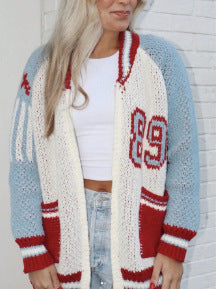 Frauen Street Fashion Strickjacke für Erwachsene. V-Ausschnitt, lange Ärmel.