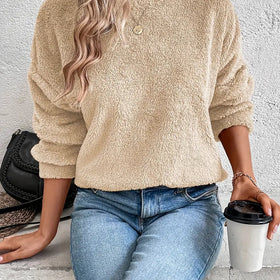 Genießen Sie höchsten Komfort und Stil an kalten Tagen mit unserem gemütlichen Teddy-Pullover. Er eignet sich hervorragend für entspannte Stunden zu Hause oder für einen modischen Auftritt unterwegs.