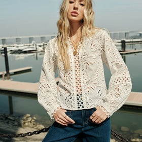 Fudus Top mit Stickerei und Hohl-Ausschnitt