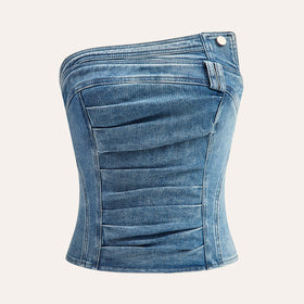 Fudus Trägerloses Top aus asymmetrisch gefaltetem Denim